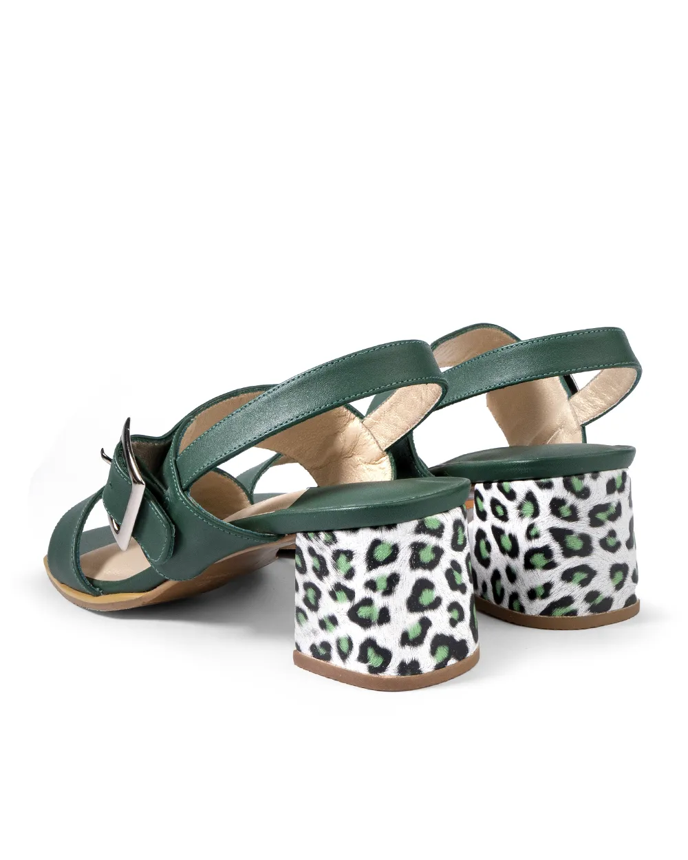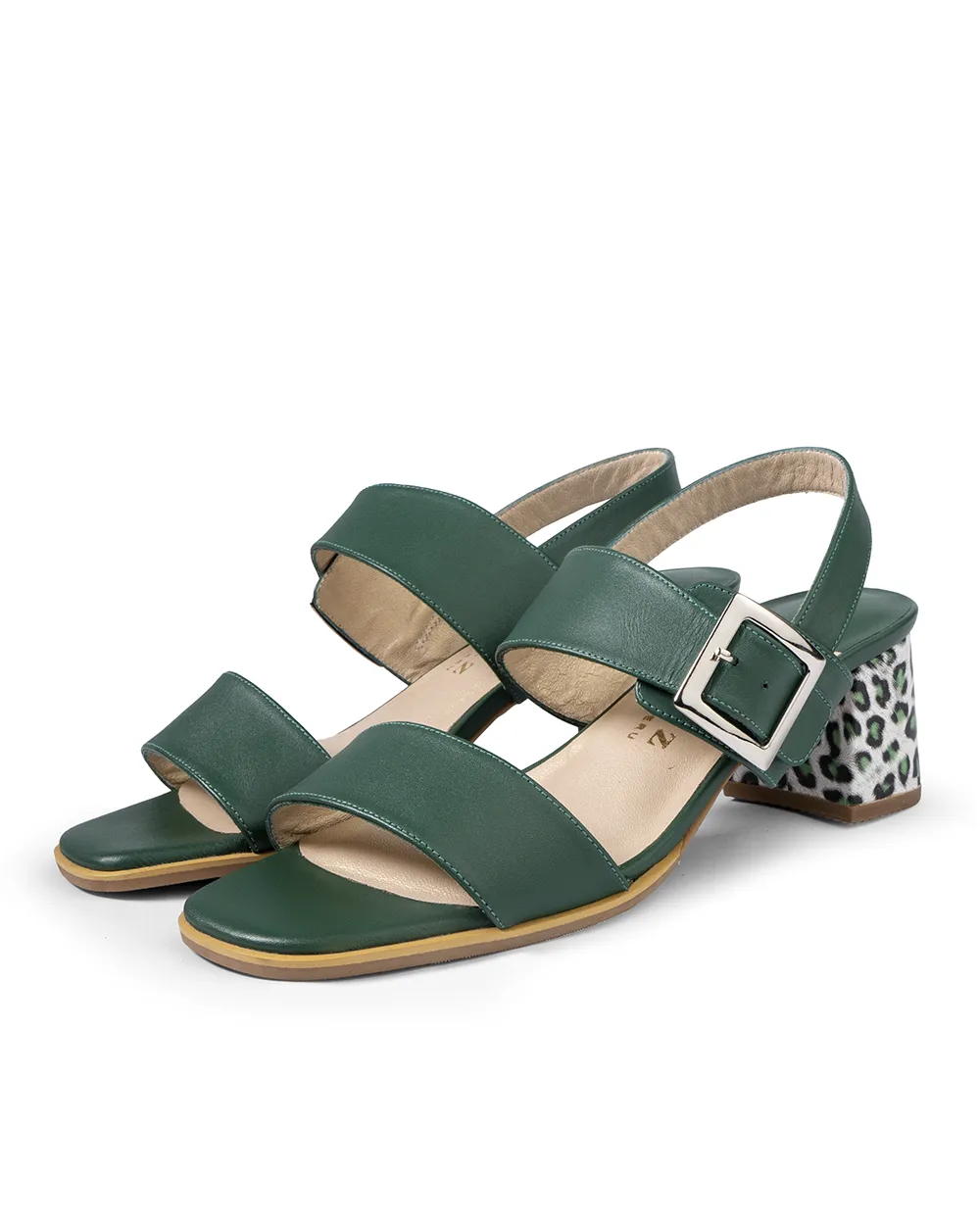 Estilo y confort van de la mano con nuestras sandalias Valeria, elaborado en piel de tono verde y un tacón de 5 cm de altura para una comodidad máxima. La opción perfecta para el día a día.